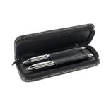 Set roller cu mină neagră și pix cu mină albastră, din metal prezentat în husă de piele PU în culori asortate.