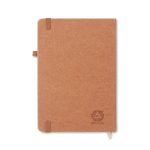 Caiet A5 cu copertă din piele reciclată 70% pre-consumator și 30% latex PU. Legare în carcasă. 160 de pagini liniate din hârtie reciclată (80 de coli). Curea de închidere elastică și suport pentru pixuri asortate.