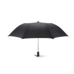 Umbrelă de 21 inchi, cu deschidere automată în 2 secțiuni , din poliester satinat 210T, ax, spițe și terminații metalice zincate. Mâner negru din plastic ABS cauciucat. Închidere manuală. Husă asortată.