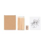 Set de colorat din 6 creioane colorate de lemn, 1 ascuțitoare și 20 pagini de colorat.