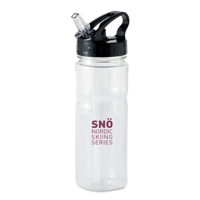 Sticlă din PCTG fără BPA cu pai pliabil pe capac. Capacitate 500 ml. Fără scurgere.