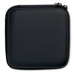 Set accesorii pentru calculator în husă imitație piele, ce include 1 mouse fară fir, 1 extensie USB 2.0 cu 4 intrări, 1 ștecher compatibil UE, 1 baterie externă de 4000 mAh și cablu micro USB.