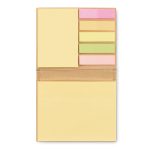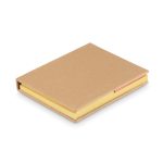 Set notițe autocolante cu copertă din carton reciclat. Blocuri de notițe autocolante galbene de dimensiuni mari și medii, de 25 și 50 de file și 5 blocuri de notițe de culori diferite, a câte 25 de file fiecare.